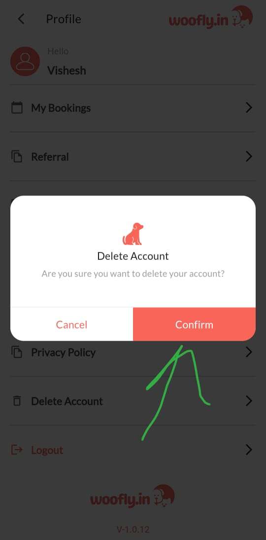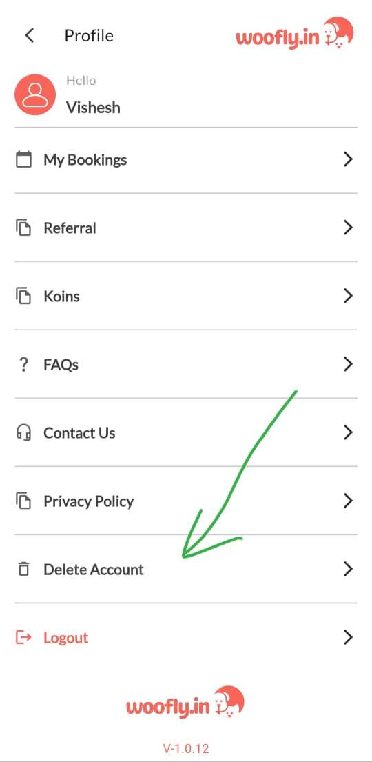 Deleting your account - woofly.in App Click the profile icon on the app 2. Click on the Delete account button 3. Click the confirm button